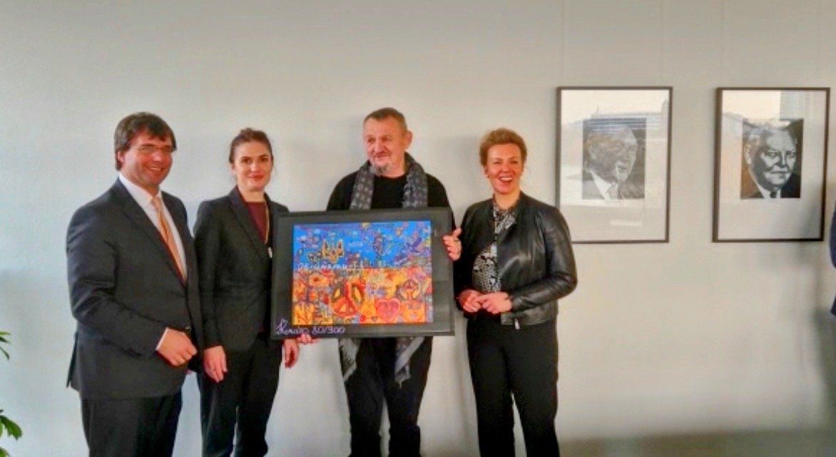 NRW State ParliamentInvitation to the NRW State Parliament by Finance Minister Marcus Optendrenk and Ina Brandes, Minister for Culture and Science. The artwork for peace was presented to the Consul General of Ukraine, Iryna Shum.
